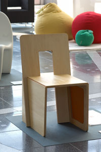 限られたスペースでの使用を目的とした折りたたむと板になる椅子。