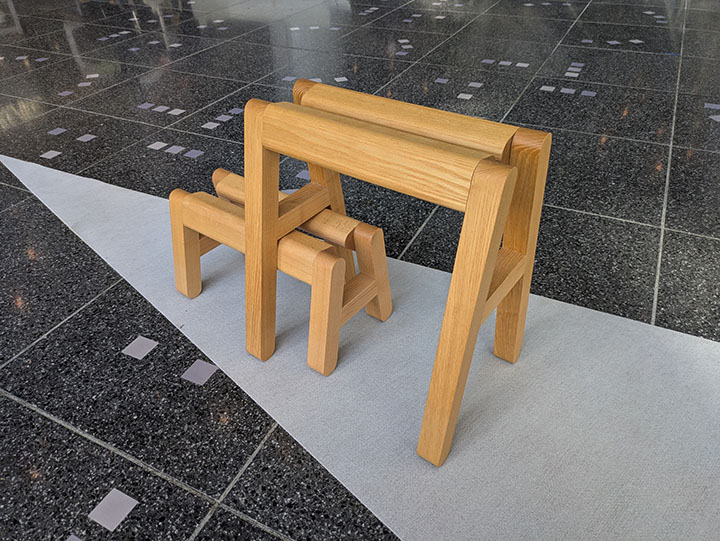 「A」 必要最低限の部材と地獄ホゾの仕口のみで支えられ成立可能な構造のスツール。